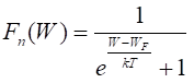 При Т = 0 К кривая вероятности изменяется ступенчато и для всех энергетических уровней, ниже уровня Ферми (W < WF), выражение Fn(W) = 1, то есть валентная зона заполнена полностью. Для энергетических уровней выше уровня Ферми (W > WF), выражение Fn(W) = 0, в зоне проводимости электроны отсутствуют.