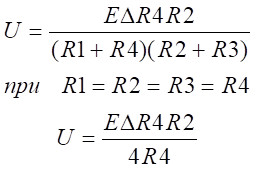 где ΔU = Un+1 – Un – приращение выходного напряжения в диагонали моста, вызванное изменением сопротивления плеча моста ΔR.