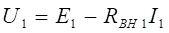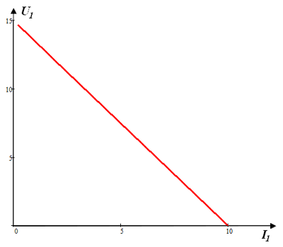 Построим внешнюю характеристику источника Е1: зависимости напряжения U1 от протекающего тока I1, то есть