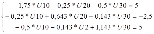 Таким образом необходимо составить систему из 3 уравнений. Для этого выбираем базисный узел (узел 0) и составим систему уравнений: