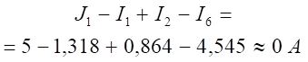 Произведём проверку правильности расчёта токов, используя первый закон Кирхгофа для одного из узлов, например, узла 1.