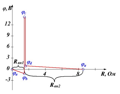 Потенциальная диаграмма двухконтурной цепи с двумя источниками питания.