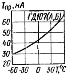 | Постоянный обратный ток Iобр при Uобр= 10 В для ГД107А и Uобр= 20 В для ГД107Б, не более:
